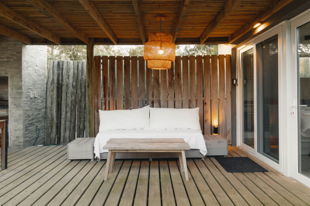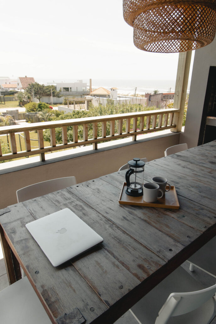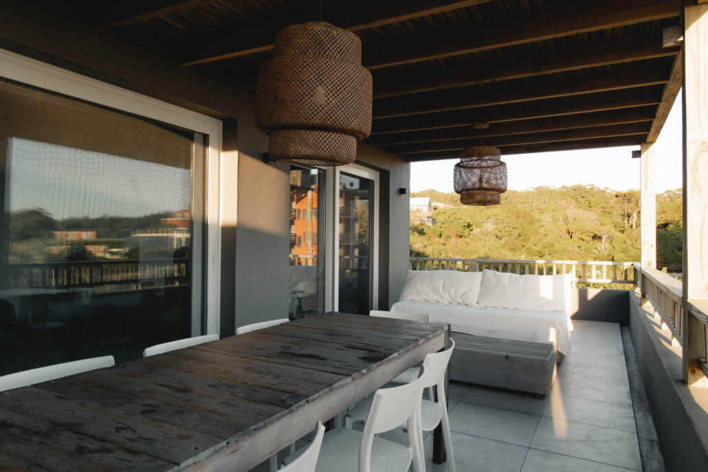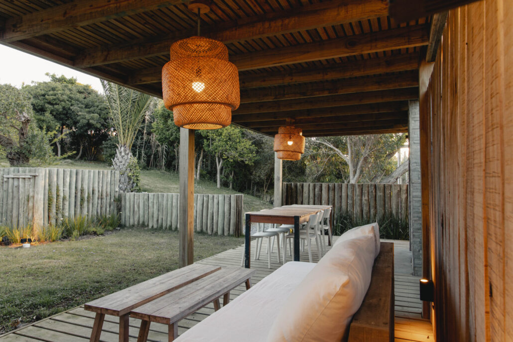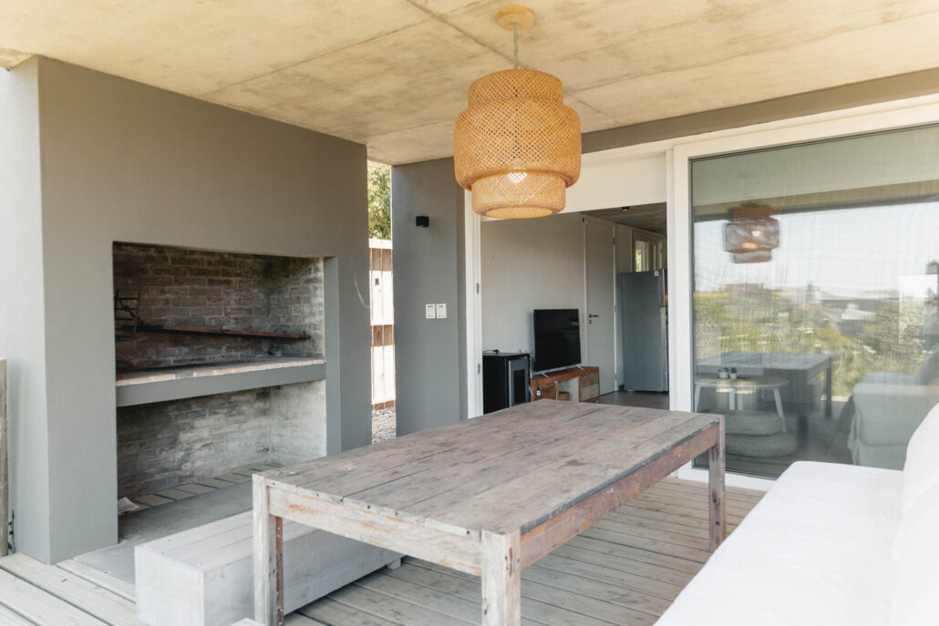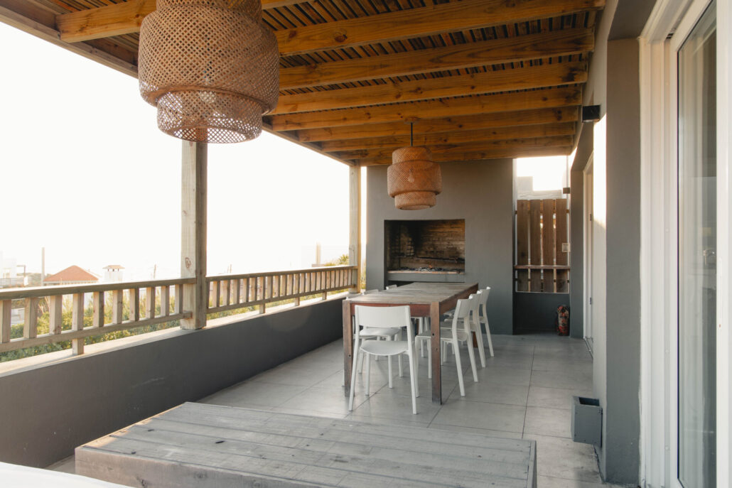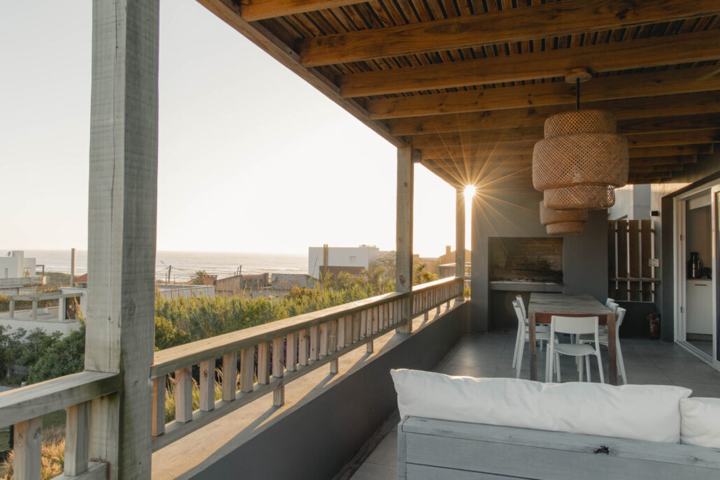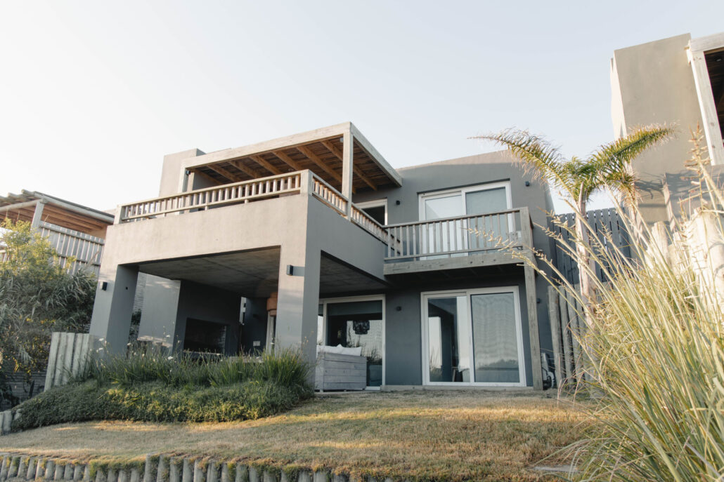 5 casas independientes frente a la playa del Desplayado en La Pedrera, Uruguay, con vista al océano.
